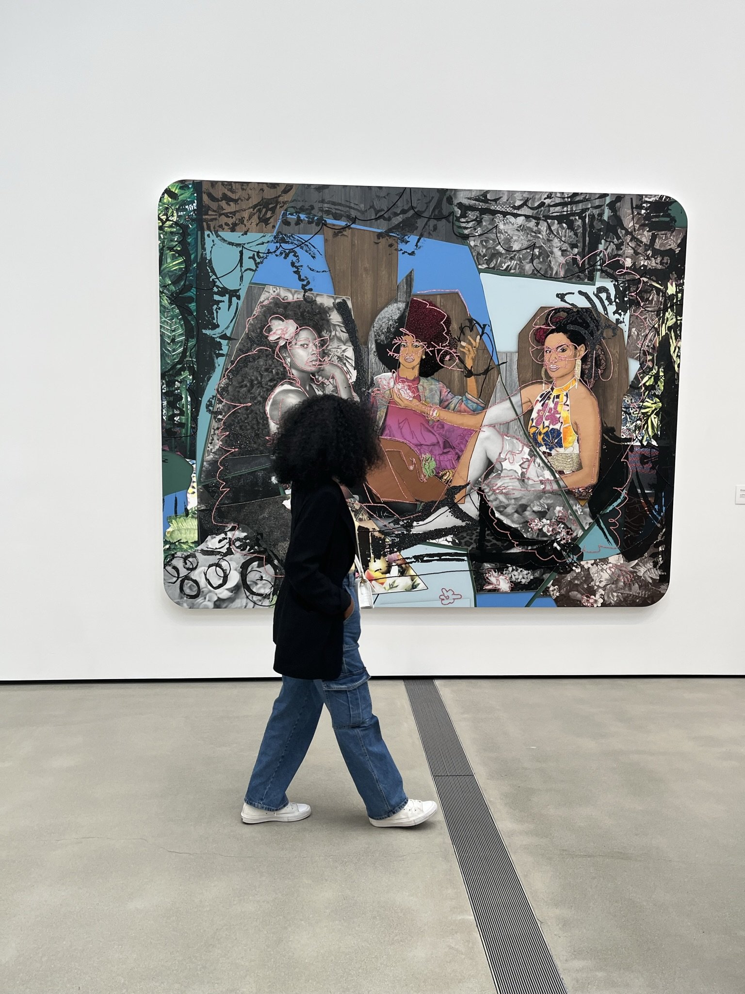 Walking through the Multiplicity: Blackness in Contemporary American Collage exhibit, I loved to see each artist’s take on collage. It sparked a desire within me to take this art form and try it myself. As the name of the exhibit already stated Blackness is multiplicit so of course Black work would be too. Of course all of the artist would have a beautiful varied take on collage and how Black culture and black experiences could be represented through it. As a lover of color my eyes had a good time seeing all of the pieces that occupied the space and popped off the walls.